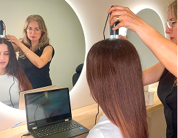 Diagnóstico avanzado con microcámara para tratar afecciones de la piel como caída, grasa, caspa, psoriasis, dermatitis, irritación, etc.